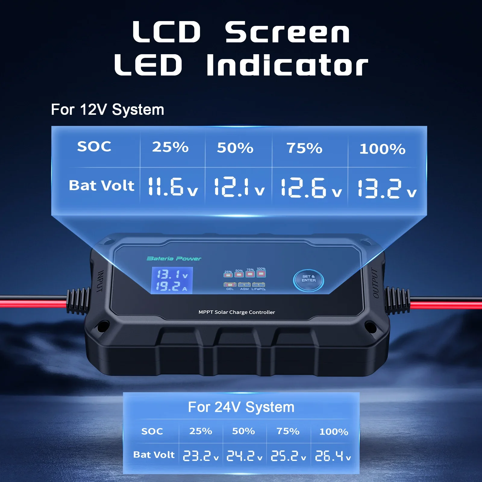 Regulador MPPT: Bateria Power 10A/20A con Bluetooth.
